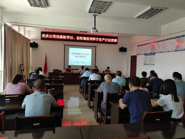 9月7日下午,安慶公司黨委副書記、總經(jīng)理王中明、監(jiān)事會主席余雙友、黨辦主任楊玲、黨委秘書李春梅等同志一行來懷寧片區(qū),給懷寧片區(qū)全體在崗黨員、科室負(fù)責(zé)人、領(lǐng)導(dǎo)班子成員上了一堂生動的黨課。