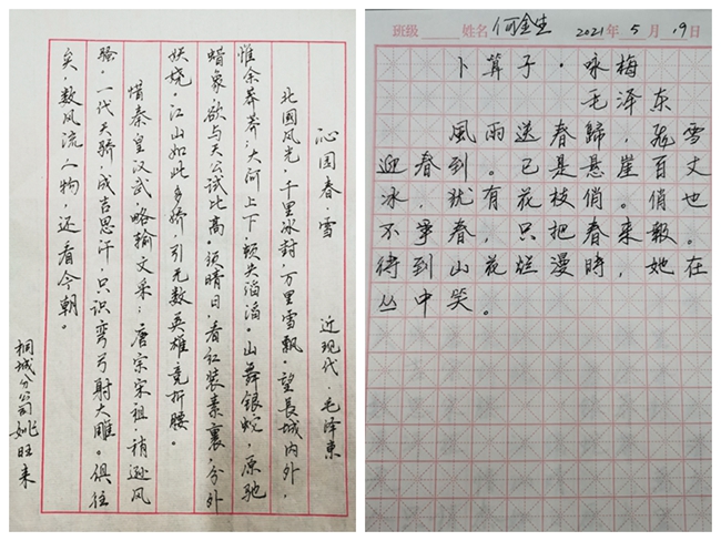 童安校車開展“翰香獻禮,感念黨恩”紅色詩詞書寫活動。通過書寫《卜算子·詠梅》《沁園春·雪》《七律·長征》等經典紅色詩詞,傳承紅色基因,發(fā)揚紅色精神。