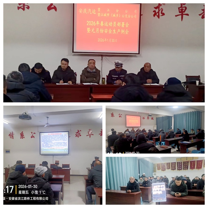 為保障春運(yùn)期間道路運(yùn)輸安全,1月30日晚,望江城市(城鄉(xiāng))公交分公司召開(kāi)2026年春運(yùn)動(dòng)員部署會(huì)暨元月份安全生產(chǎn)例會(huì)。望江縣道路運(yùn)輸管理服務(wù)中心、縣交警大隊(duì)蒞臨指導(dǎo)會(huì)議?紤]到鄉(xiāng)鎮(zhèn)駐點(diǎn)駕駛員的實(shí)際,會(huì)議創(chuàng)新采用微信視頻群聊方式,確保了全司60余名駕駛?cè)恕踩珕T等“面對(duì)面”參會(huì),實(shí)現(xiàn)培訓(xùn)全面覆蓋。
